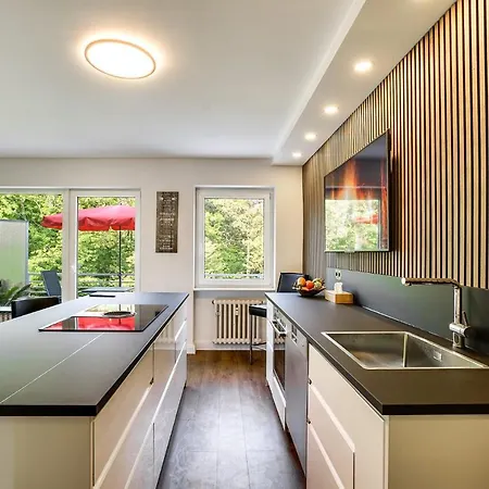 A fridge, oven, and a dishwasher are provided for guests at a kitchen. Dusseldorf airport is at a 15-minute driving distance, and Benediktusstrasse bus stop is in the vicinity of this apartment.